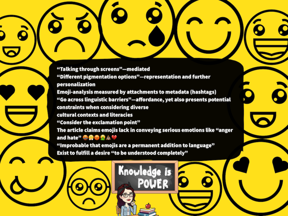 After reading the Emoji piece, consider these two “Bitmoji and Resumes” articles that demonstrate larger conversations debating appropriate rhetorical moves and context. How do Bitmoji’s and Emoji’s function in comparison to each other?