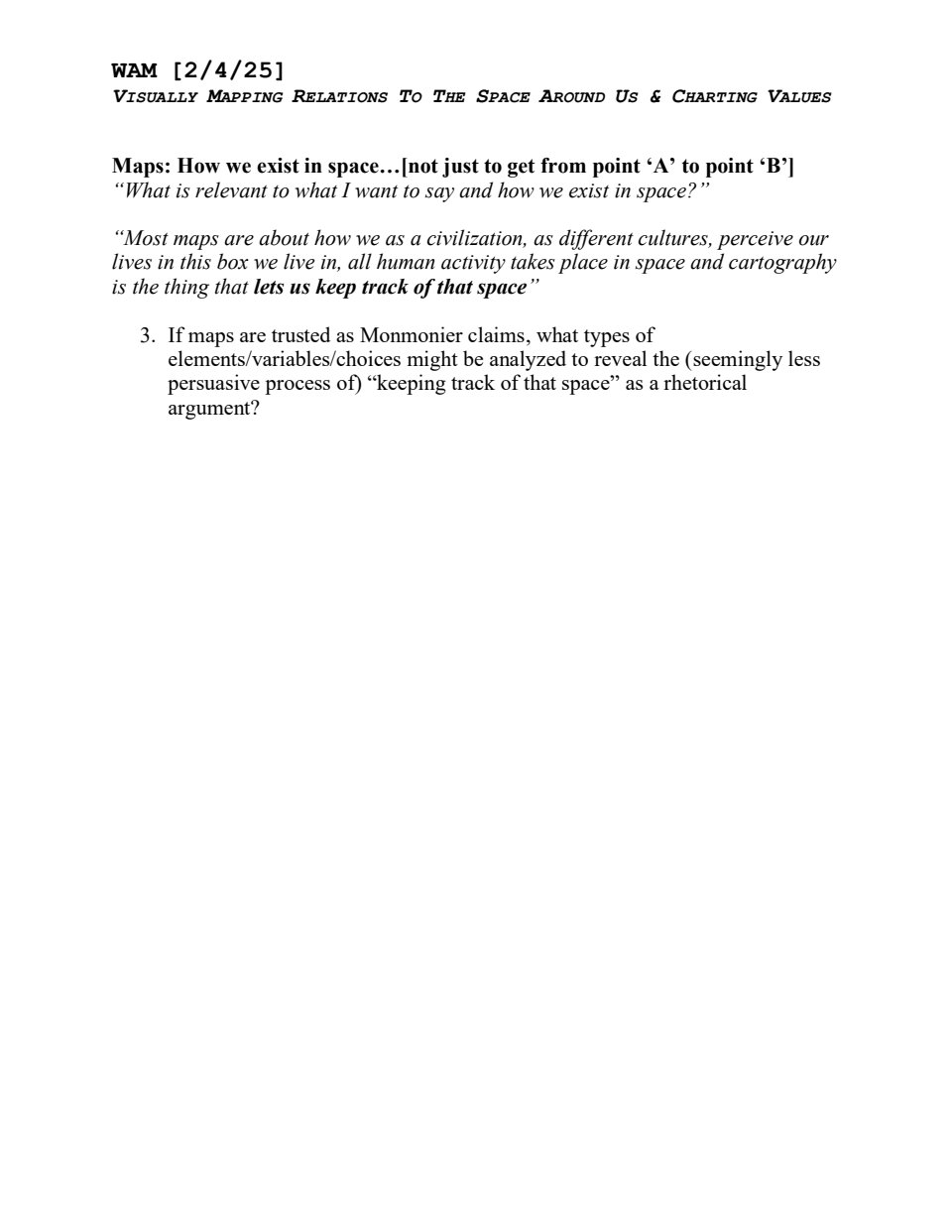 • Create – a WAM blog and post the link to Canvas, before next class (12:30PM, Thursday 1/23/25) for participation