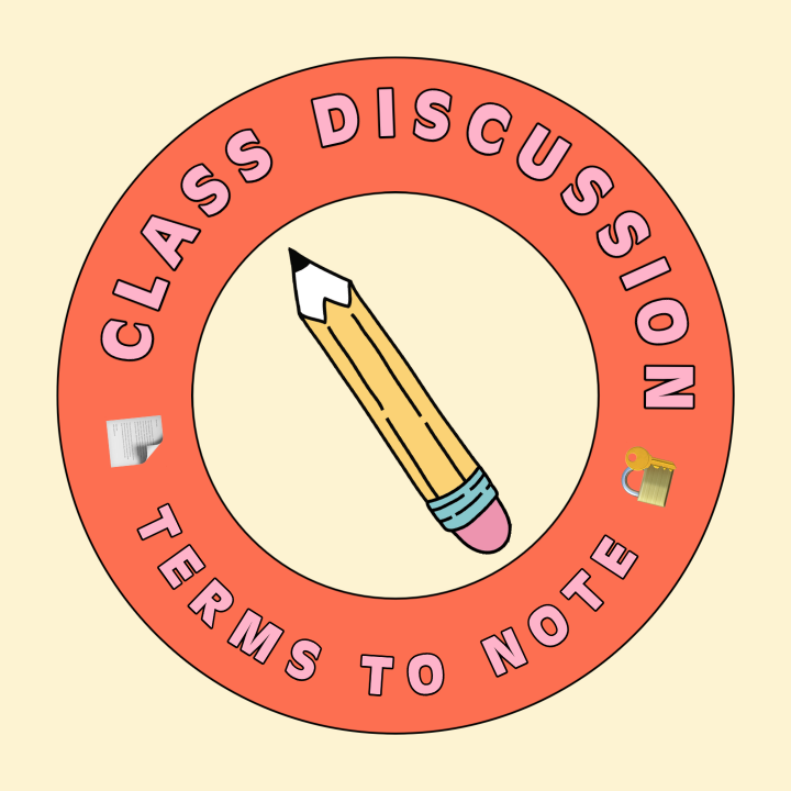 Visit https://docs.google.com/document/d/13OnHlueKdtOtdcvuLbKx6xNGVNYPfq7fWPMR5LlgQJo/edit?usp=sharing or see below to access a working list of (and sources for) key terms from our class discussions
