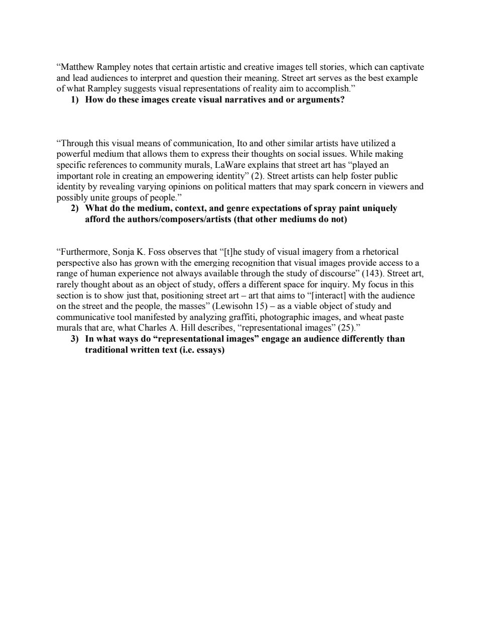 The blog is a space for you to wrestle with ideas and meanings in the course content, raise your own questions, and investigate your own interests around multimodality and writing across media. Plan to create at least 8 posts (300-500 words each) over the course of the semester. While you are encouraged to create posts as frequently as you wish, and to use this space as process journal, the class schedule will have reminders for formal posting dates/requirements. Your blog’s address/streaming link will be attached to the course blogroll and will be public to me and your classmates. Post accordingly.