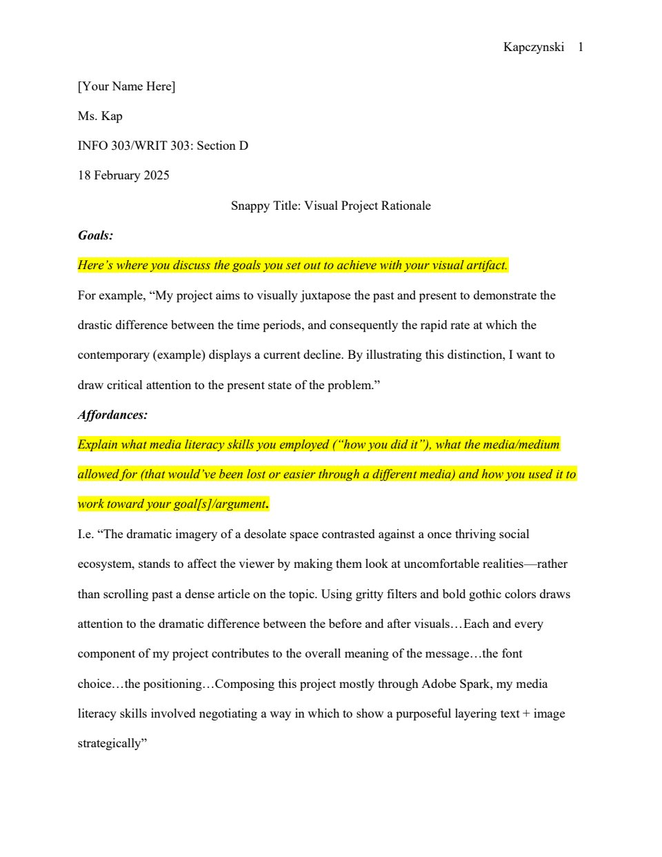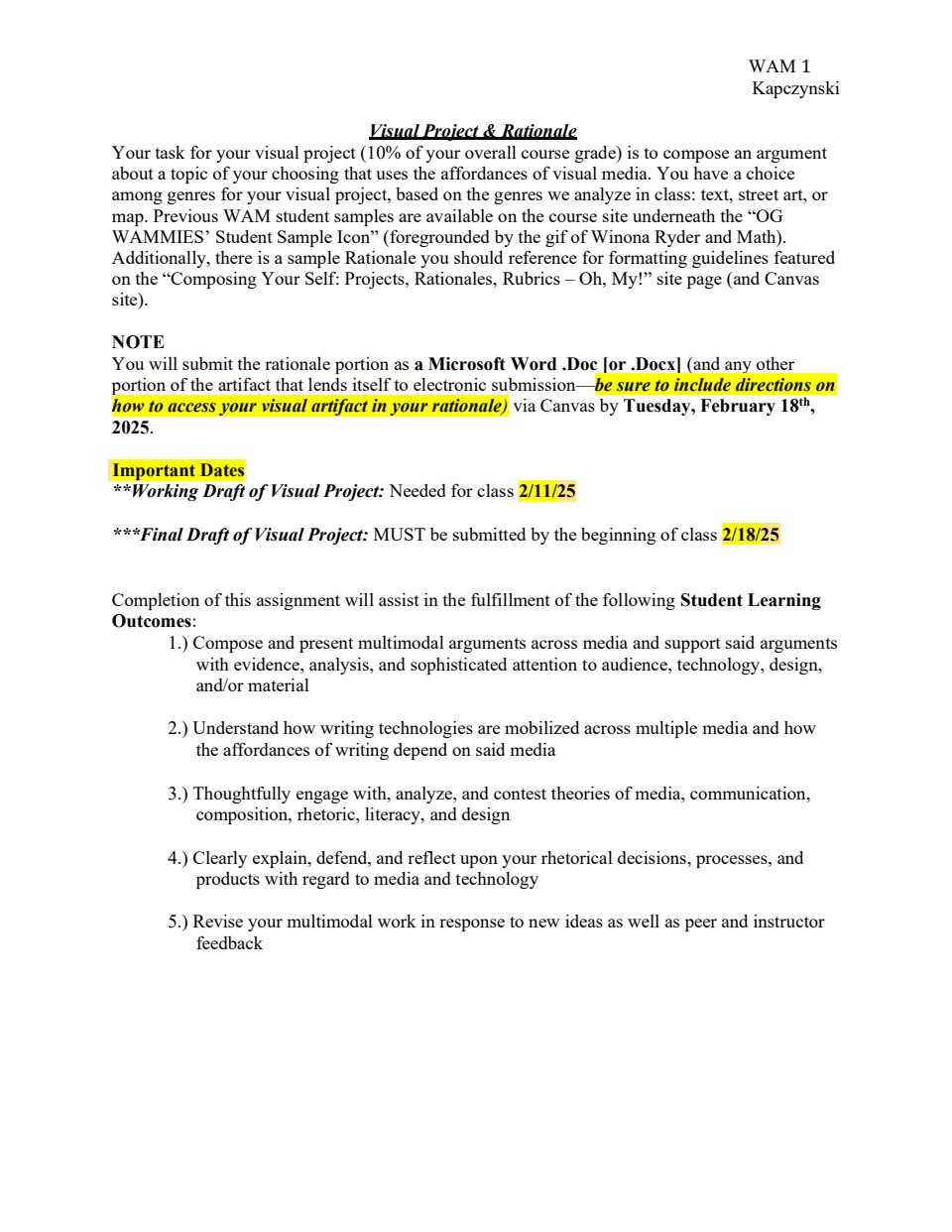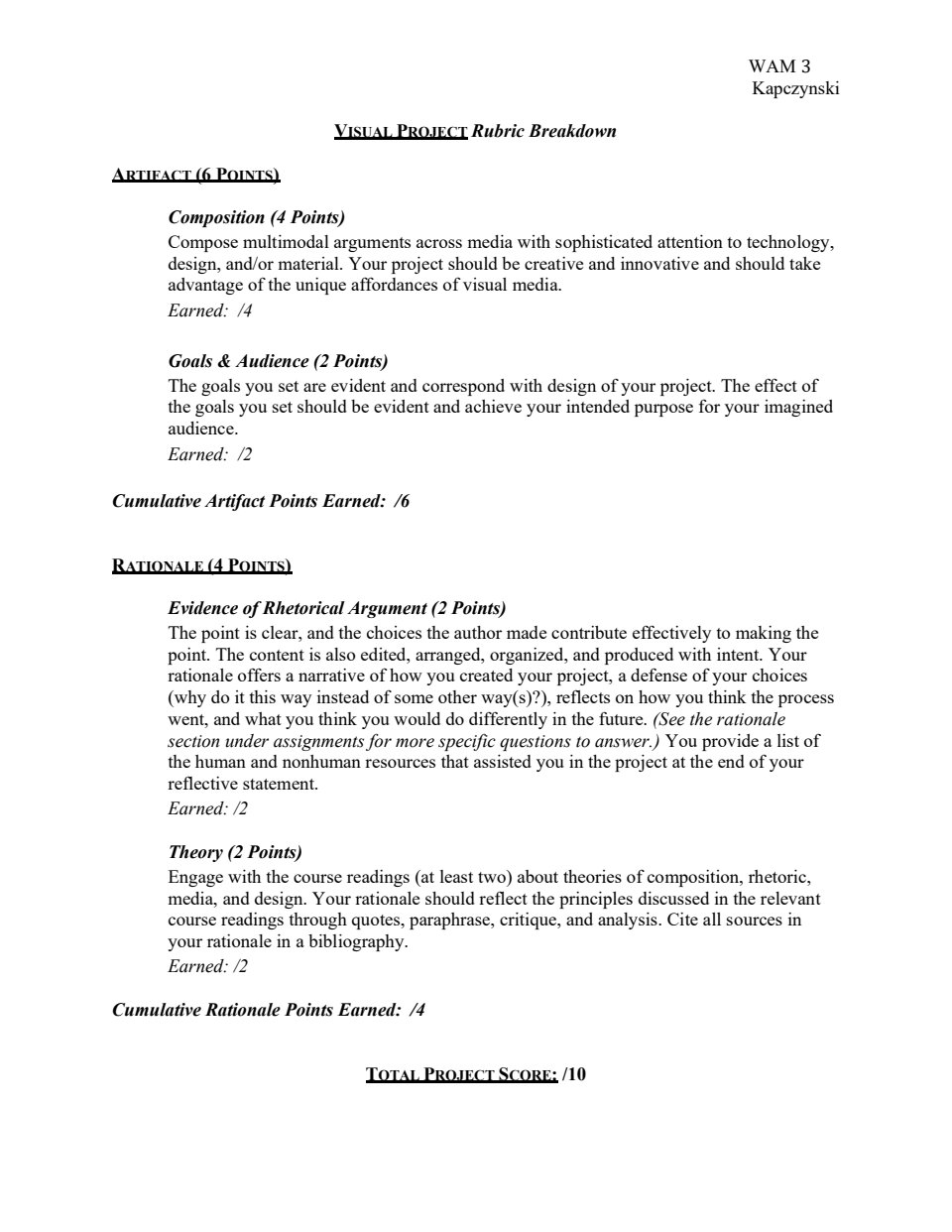 The Visual Project Rationale Prompt + Rubric (also available streaming below, @ https://tinyurl.com/VisualProjectRationale & Canvas)