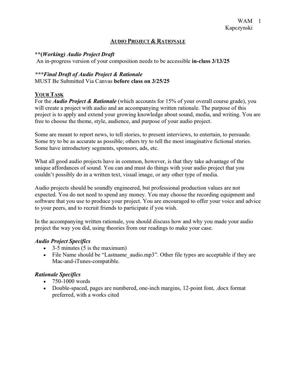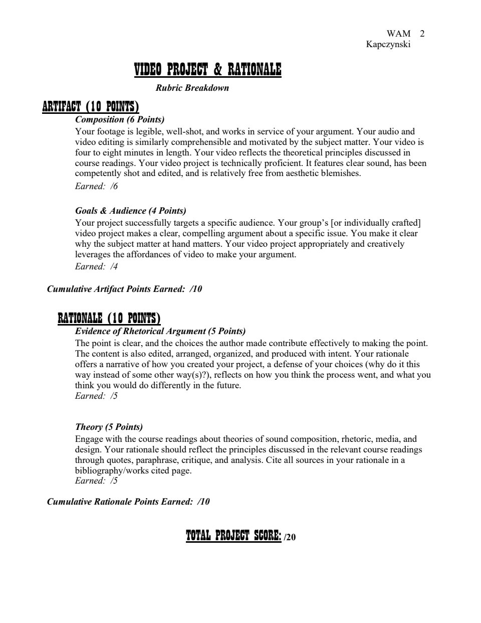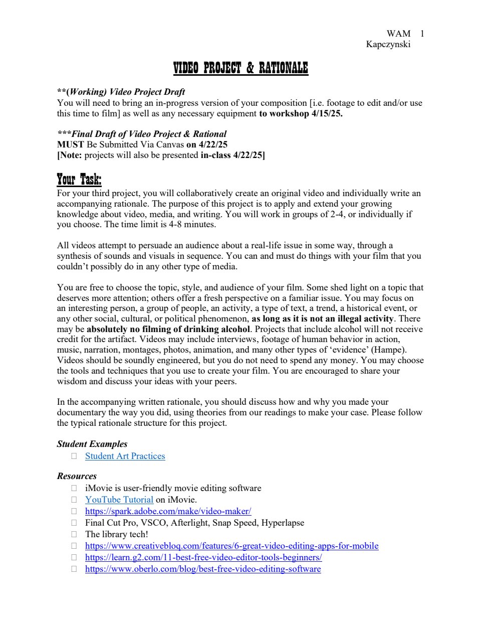 The Visual Project Rationale Prompt + Rubric (also available streaming below, @ https://tinyurl.com/VisualProjectRationale & Canvas)