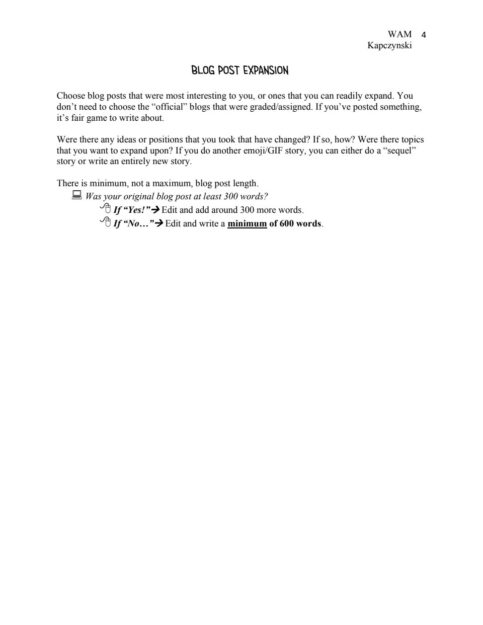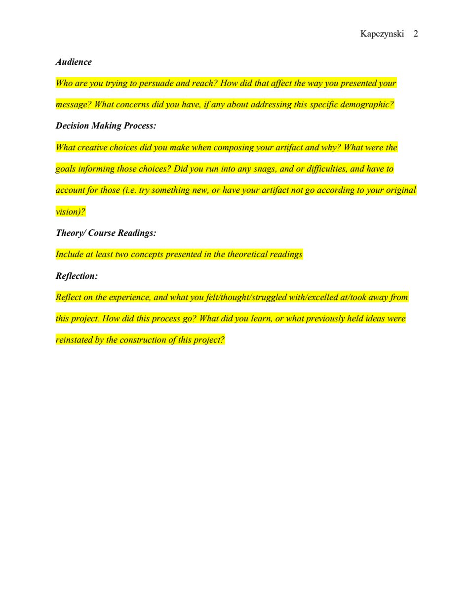 NOTE: It's highly recommended to make all three portions of the portfolio accessible on your blog—see past student examples for formatting samples.