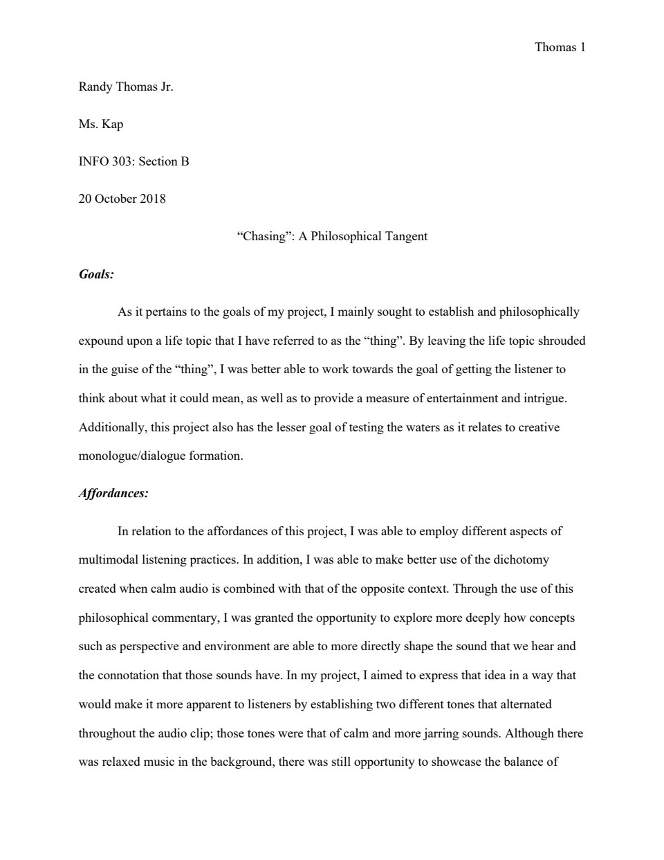Randy Thomas Jr.'s Audio Artifact – “Chasing: A Philosophical Target”