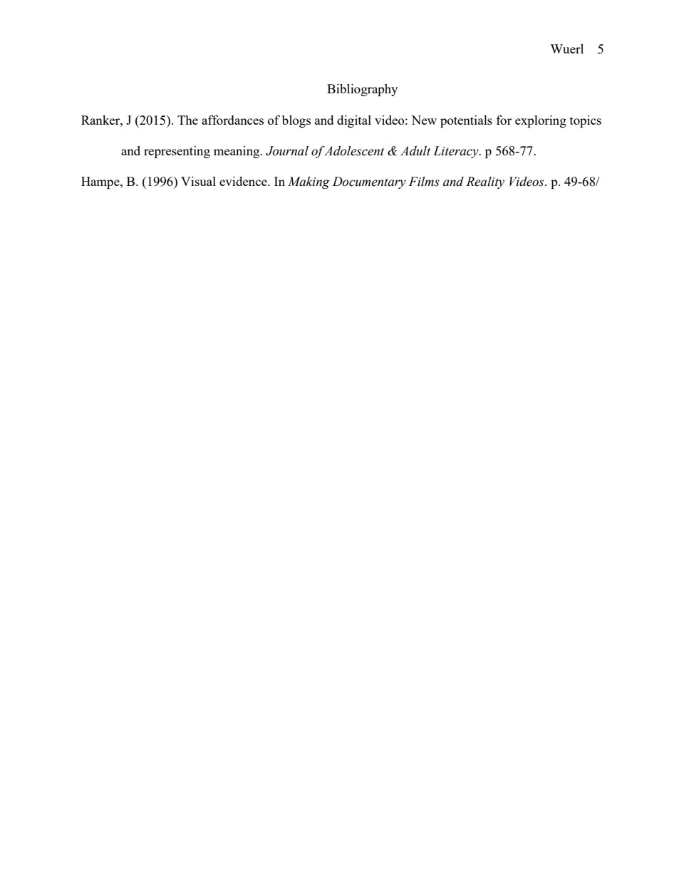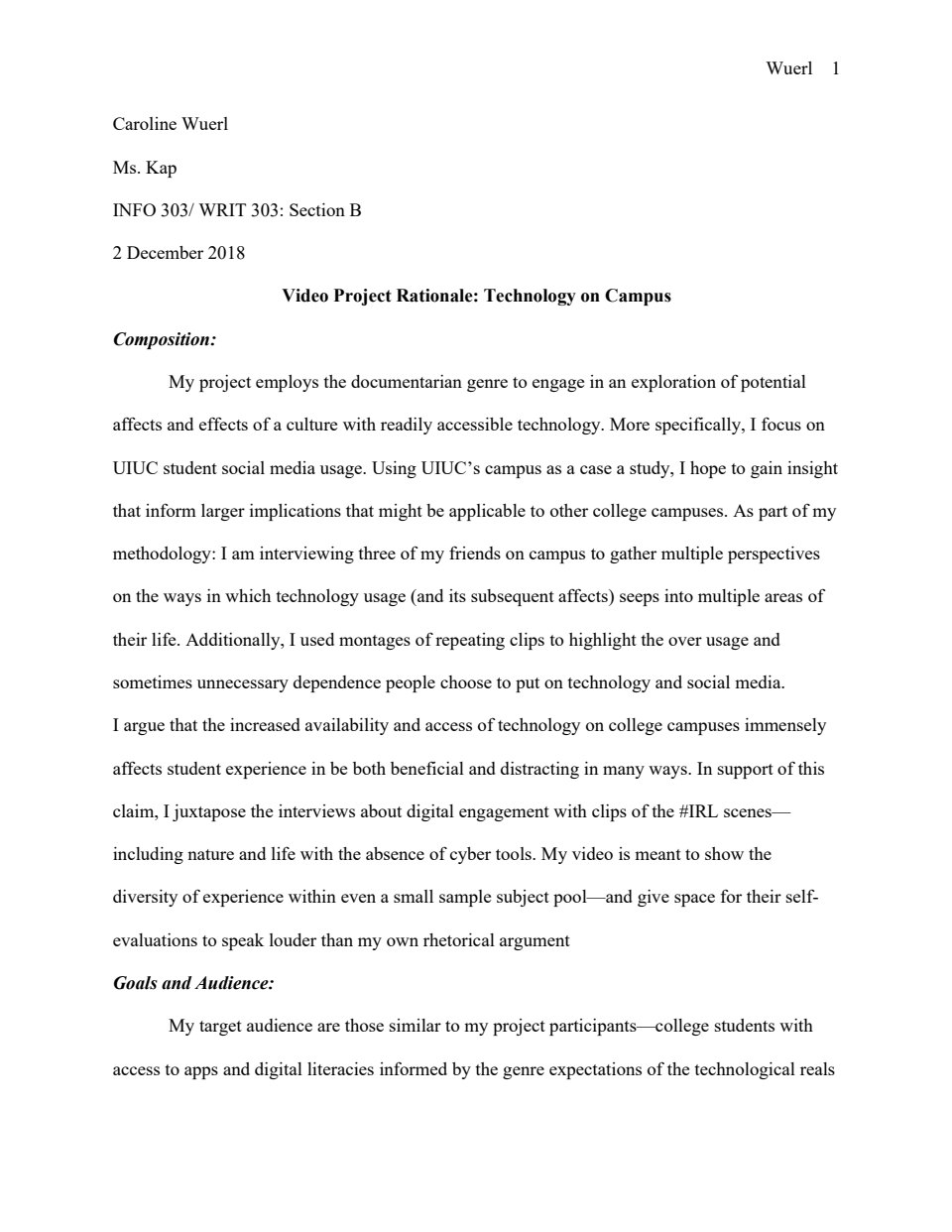 Reference Previous Student Submissions [Below] for Video Project Samples